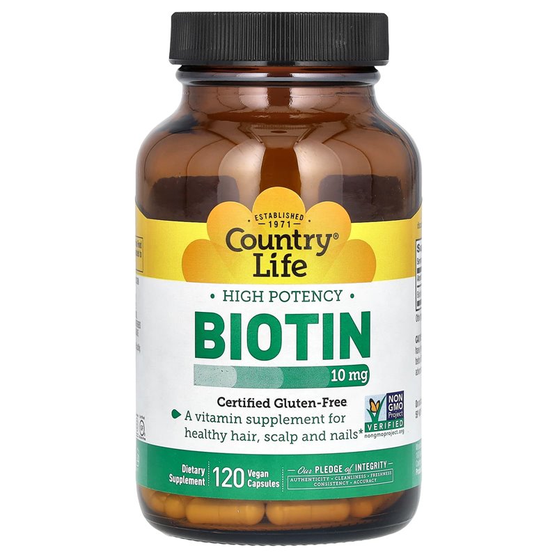 Country Life, hochwirksames Biotin, 10 mg, 120 vegane Kapseln