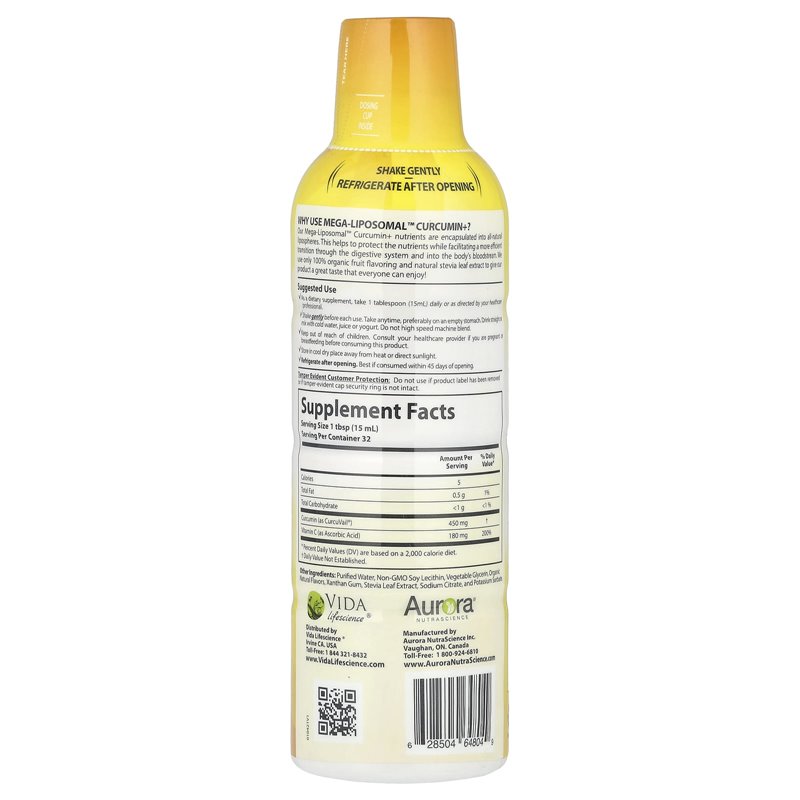Aurora Nutascicience, Mega-Liposomal™ Curcumin+, Organic Fruit, 450 mg, 16 fl oz (480 ml)