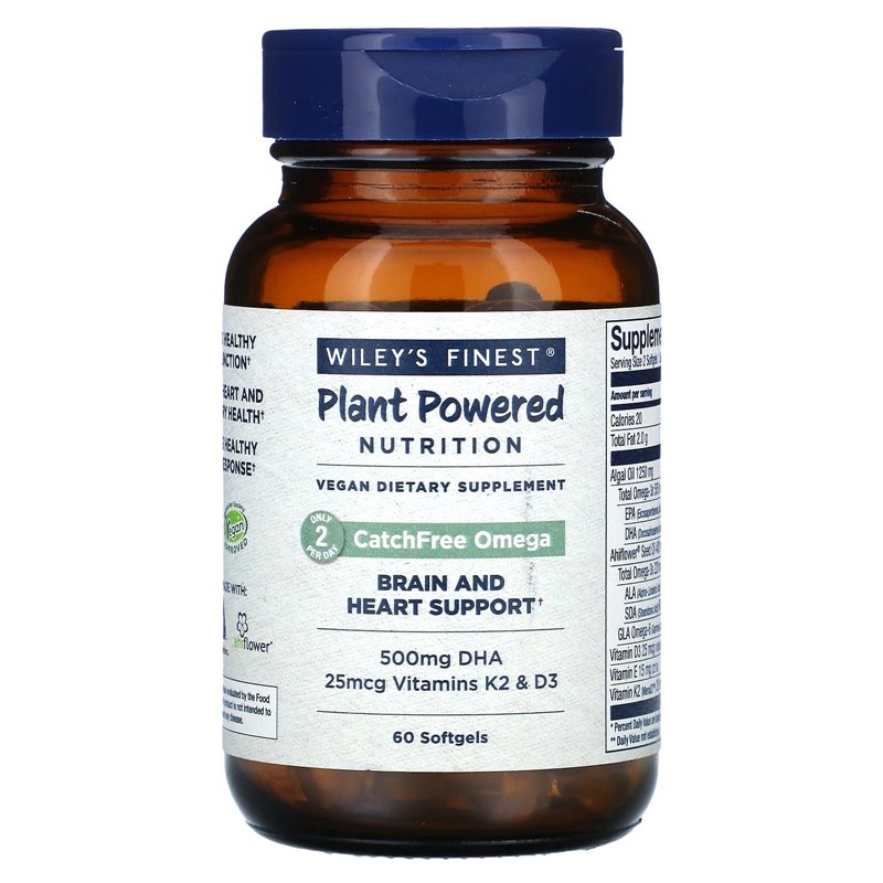 Kapsułka CatchFree Omega Full Spectrum Omega-3 łączy ponad 700 mg wolnych od ryb kwasów Omega-3, w tym 500 mg kwasu DHA z kwasami omega-3, 25 µg witaminy K2 i 25 µg witaminy D3, aby odżywiać serce i mózg oraz wspierać ogólny stan zdrowia i dobre samopoczucie.